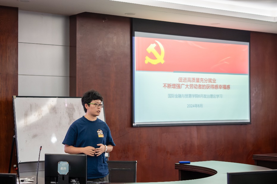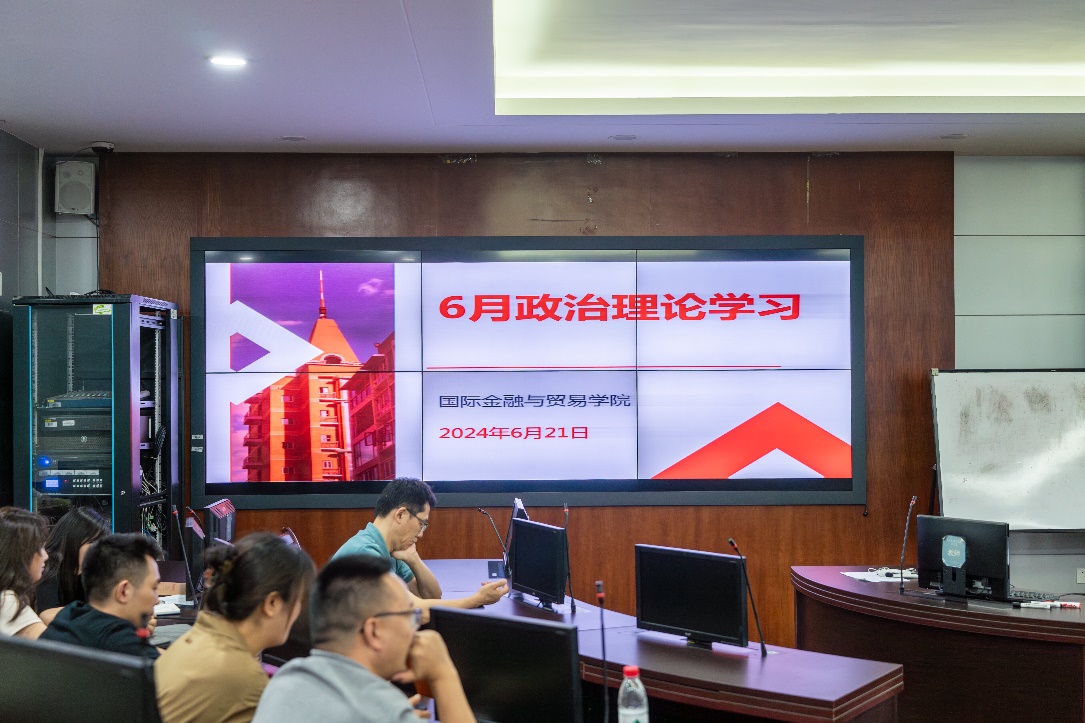 2024年6月21日,国际金融与贸易学院开展了6月政治理论学习,学习内容主要围绕习近平新时代中国特色社会主义思想、党纪学习教育和市重要会议精神展开。