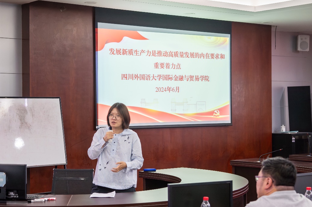 首先,新闻中心主任付璠洁博士围绕“发展新质生产力是推动高质量发展的内在要求和重要着力点”为主题进行领学,分析了新质生产力的本质,提出要从科技、发展方式等方面创新,推动高质量发展。就此,翟浩淼老师和张云老师发表个人学习心得,鼓励要从多方面入手创新,培养学生的新质生产力,满足国家对高质量人才的需求。